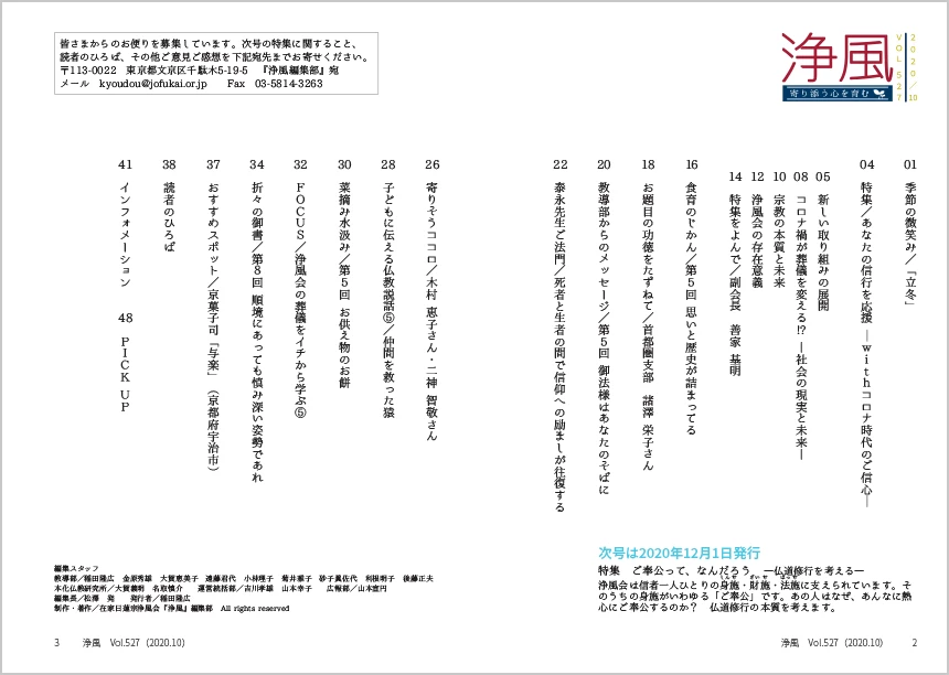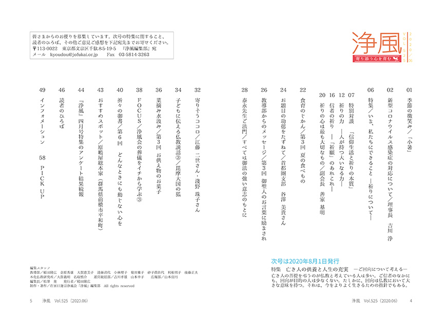 機関誌「浄風」を発刊しております。