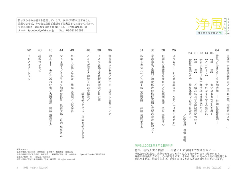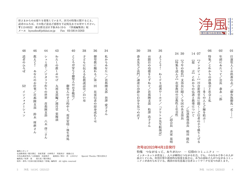 機関誌「浄風」を発刊しております。